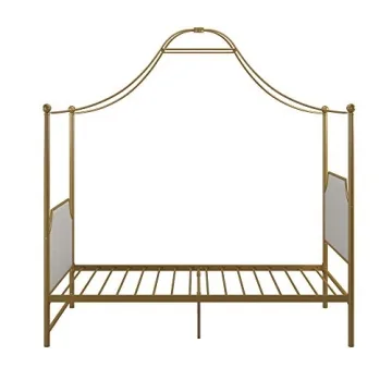 This canopy bed not only boasts an exceptional design but is also equipped with metal side rails for superior stability and a center metal rail with additional legs to enhance support. Customers rave about the impressive durability of this bed; many have experienced years of use with no signs of wear, making this an investment worthwhile. Its attractive dark matte gold finish further elevates this piece, allowing it to blend effortlessly with a variety of decor styles, from contemporary to classic.