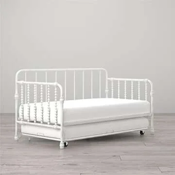 Show moreIntroducing the **Little Seeds Monarch Hill Wren Metal Daybed with Trundle**, a stunning and practical addition to any child's room or guest area. This stylish twin-size frame features a lovely curved scrollwork design that not only adds a touch of elegance but also seamlessly complements your home decor. Crafted with a sturdy metal frame and durable slats, this daybed can support a weight limit of up to 400 lbs, making it suitable for both children and adults alike. The trundle conveniently rolls out for additional sleeping space, making it perfect for accommodating guests or sleepovers!