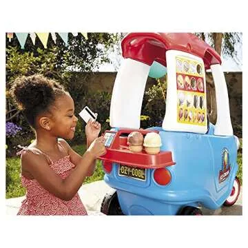 Show more The ALL-NEW COZY COUPE has taken a beloved classic and transformed it into the modern Cozy Ice Cream Truck, perfect for fostering creativity and imagination in young children. The Little Tikes brand is well-known for its durable, kid-friendly products, and this delightful ice cream truck is no exception. Parents will appreciate the convenience of the handle that enables them to push the vehicle, while the option to remove the floorboard allows little ones to take the wheel themselves. With its innovative design, this versatile toy guarantees hours of active play, whether indoors or outdoors.