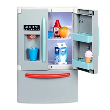 Show more If you're looking for an engaging and imaginative gift for your little chef, look no further! This interactive toy refrigerator is a delightful addition to any child's playtime, designed to mimic the experience of a real-life cooking environment. Perfectly suited for children aged 2 and above, this refrigerator allows kids to unleash their creativity and indulge in hours of pretend play. With its realistic features, including a working ‘ice’ dispenser that produces delightful sounds of crushed ice and water dispensing, your child will be captivated as they play chef in their very own kitchen. The refrigerator also boasts dual French doors, complete with an interior light that illuminates when opened, adding an extra layer of authenticity to the experience.