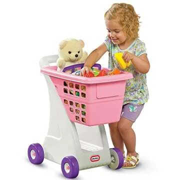 Toddler-sized toy shopping cart with sturdy walls keep small items inside