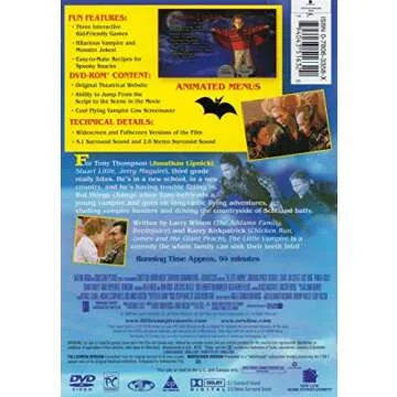 Introducing The Little Vampire DVD—a delightful family film that offers a perfect blend of humor, adventure, and excitement for children and adults alike! This cult classic, originally released in 2000, follows the enchanting journey of 7-year-old Tony Thompson, an American boy who, after relocating to Scotland, finds himself at the center of peculiar adventures involving vampires! With its whimsical storytelling and endearing characters, this movie guarantees to capture hearts across generations.