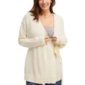 Liu & Qu Women's V-Neck Maternity Sweater Tops Tie Front Wrap Knit Maternity Shirts Pregnancy Clothes White