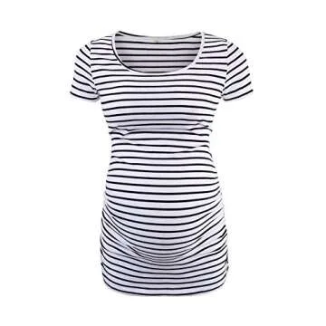 Liu & Qu Womens Maternity Classic Side Ruched T-Shirt Tops Mama Pregnancy Clothes White Black Stripe L