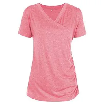 Liu & Qu Womens Maternity Nursing Tops Short Sleeve Breastfeeding Shirts Heather V Neck Clothes