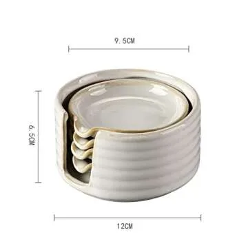 LIUCUON Ceramic Spoon Rest,Spoon Holder,Soy Sauce Dishes with Holder for Kitchen,Household Dipping Sauce Dishes Set, Side Dishes, Kitchen Basics,Set of 4 Kitchen Accessories For Utensils (cream)