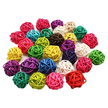 LIUSM 20 Pcs Colorful Handmade Wicker Rattan Balls - Fun Pet Bird Toys & Creative Decor