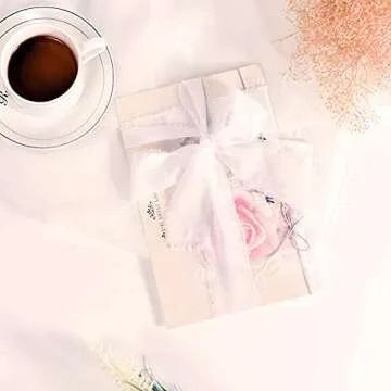 LIUYAXI Handmade Fringe Chiffon Silk Ribbon 1-3/4" x 7Yd, 4 Rolls Ivory Ribbons Set Perfect for Wedding Invitations Bridal Bouquets Gifts Wrapping DIY Craft