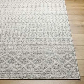 Show moreIntroducing the Livabliss Chester Boho Moroccan Area Rug—a stunning addition to any home that effortlessly combines style and functionality. Measuring 6 ft 7 in wide by 9 ft long, this rug is designed to enhance your living space while offering exceptional durability. Crafted from machine-woven polypropylene fibers, it holds up beautifully against everyday wear and tear, making it the perfect choice for high-traffic areas like your living room, dining room, or kitchen. With its chic bohemian pattern in elegant shades of grey, it not only complements a variety of decor styles but also serves as a warm and inviting foundation for your room.