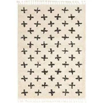 Livabliss Olinda Swiss Cross Shag Area Rug,3'11" x 5'7", Charcoal/Beige