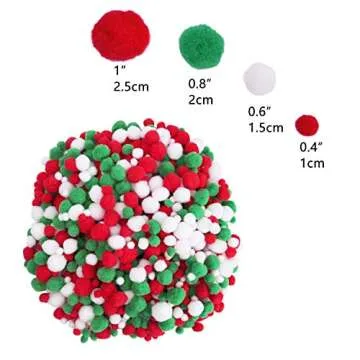 Livder 200 Pieces Christmas Red Green Pipe Chenille Cleaners Stems and 1000 Pieces Pom Poms Pompoms for DIY Art Crafts Decorations Supplies