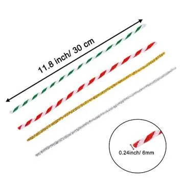 Show moreGet ready to unleash your creativity with the **Livder 400 Pieces Christmas Pipe Cleaners Chenille Stem**. This diverse crafting set includes a vibrant assortment of 400 colorful pipe cleaners, featuring 100 pieces in each of four festive colors: bright red, lush green, sparkling gold, and shimmering silver. Crafted from a combination of **iron wire**, **polypropylene**, and **glitter fiber**, these pipe cleaners are designed to be both durable and flexible. Measure approximately **11.8 x 0.24 inches**, they can easily be twisted, cut, or shaped according to your project's requirements. Whether you're crafting holiday decorations or fun ornaments, these pipe cleaners provide the perfect base to let your imagination soar.