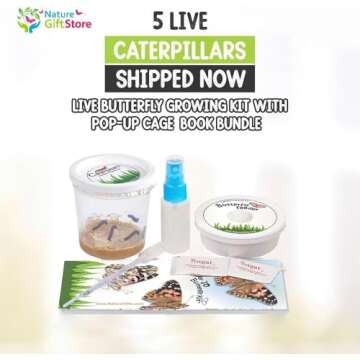 Live Butterfly Growing Complete Kit - Includes 5 Live Caterpillars - All-in-One Set with Net Cage, Food, and Rearing Supplies - Book Bundle
