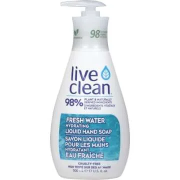 Show moreExperience Pure Indulgence with Live Clean Liquid Hand Soap – the ultimate hand soap that delivers a luxurious cleansing experience while being gentle on your skin. Encased in a 500 mL bottle, this beautifully crafted Fresh Water Hydrating Liquid Hand Soap is infused with a blend of certified organic botanicals and nourishing vitamin E that not only cleanses but also moisturizes your hands. With its rich, thick lather and a delightful mild scent, it promises to leave your skin feeling soft, fresh, and pampered. This vegan soap is made from 98% plant-based ingredients, ensuring that you can indulge without compromising your values. Plus, it is free from parabens, sulfates, and harmful chemicals, making it safe for everyone in the family.
