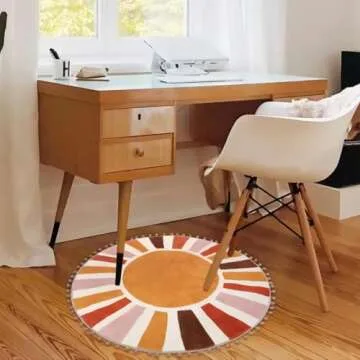 LIVEBOX Retro Sun Round Rug for Bathroom 2.3 ft,Colorful Boho Rug Small Circle Rug for Bath Tub,Non-Slip Cute Rainbow Rug for Kids Room, Washable Circular Carpet for Bedroom Dorm