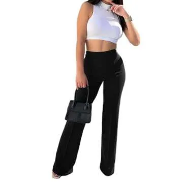 LIVECLOTH Casual Daily Work Business Wear Bell Flare Trousers, Women's High Waisted Straight-Leg Pants with Back Zip Closure, Black Flare Dress Pants for Women (Black, S)