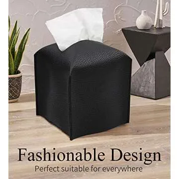Livelab Tissue Box Cover, Square Decorative PU Leather Tissue Box Holder Modern Tissue Case Facial Paper Organizer Dispenser for Bathroom, Vanity Countertop, Night Stands, Desk, Car 5X5X5'' | Black