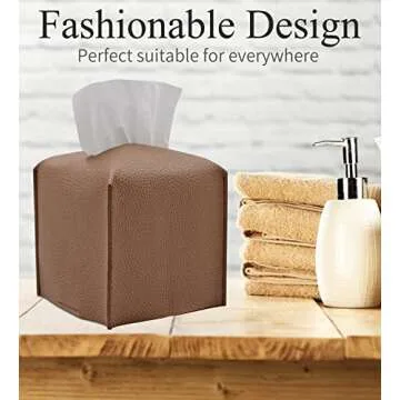 Show moreIntroducing the Livelab Tissue Box Cover, the perfect blend of functionality and style that brings a modern touch to your interior spaces. Crafted from high-quality PU leather in a sophisticated bronze color, this tissue box cover is designed to elevate the aesthetic of any room. At a compact size of 5x5x5 inches, it is not only versatile but also incredibly practical, fitting seamlessly with standard square tissue boxes. Whether you place it on your bathroom vanity, desk, or bedside table, it adds a chic decor element while effectively concealing the ordinary cardboard tissue box.