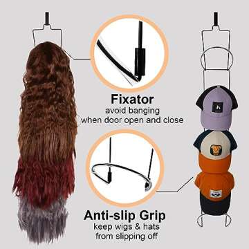 Livememory Hanging Hat Rack, Wig Rack Wigs Holder Hanger Wigs Storage for Door, Wall, Closet, Bathroom, 10pack (Black)