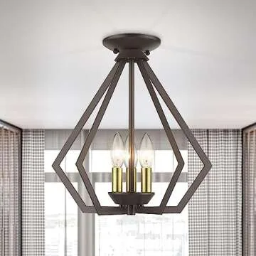 Show moreIlluminate your space with the Livex Lighting 40923-01 Transitional Three Light Mini Chandelier/Ceiling Mount, a stunning addition to your home decor. Crafted with an elegant antique brass finish, this chandelier combines the classic charm of traditional lighting with a contemporary twist. Its compact dimensions—measuring 16" L x 19" W x 7" H—weighing just 7 lbs—make it the perfect choice for both large rooms and cozy nooks. Though it doesn't come with bulbs included, you'll find that it easily accommodates standard light fixtures, allowing you to choose your preferred bulbs for the perfect ambiance.
