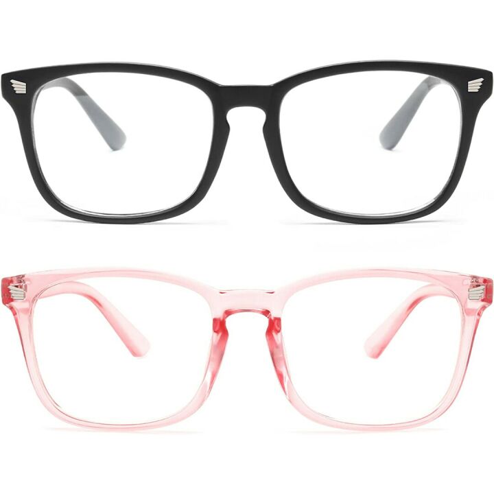 Livho 2 Pack Blue Light Blocking Glasses - Matte Black + Clear Pink