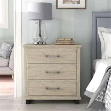 LIVILAND 32 in. 3-Drawer Bedroom Nightstand with Elevated Metal Legs - Beige