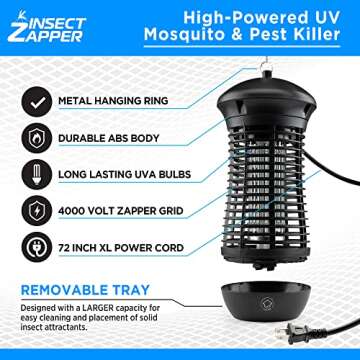 Livin’ Well Bug Zapper Indoor Outdoor - 4000V High Powered Electric Mosquito Zapper Home Patio, 1,500 Sq Ft Range Fly Trap, 18W UVA Bulb Mosquito Killer Lamp Insect Bug Light, Black