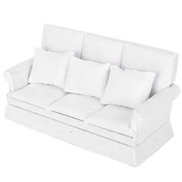 Living Room Furniture 1/12 Scale Dolls House Furniture Couch, with 3pcs Pillow Dollhouse Sofa, Miniature for Girls Kids Children(White)