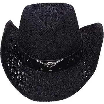 Livingston Men & Women's Woven Straw Cowboy/Cowgirl Western Hat, Black