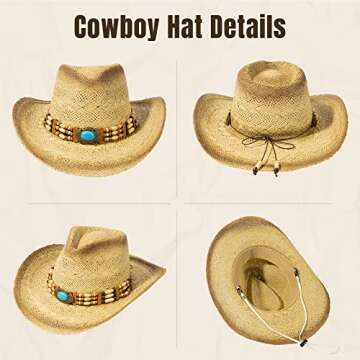 Livingston Men & Women's Woven Straw Cowboy Hat w/Hat Band Decor, Oval Bead Nature