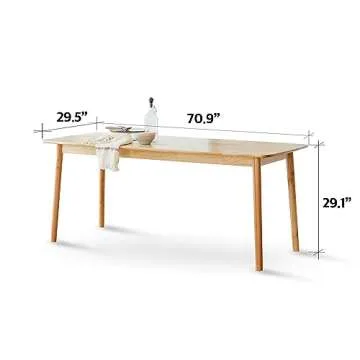 Livinia Aslan 70.9" Malaysian Oak Rectangular Wooden Dining Table/Large Solid Wood Kitchen Desk (Natural Oak)