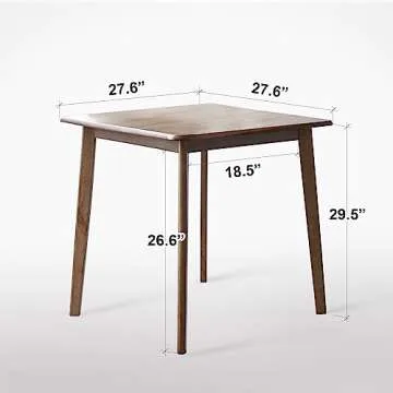Livinia Canberra 27.6" Square Wooden Dining Table/Mid Century Modern Malaysian Oak Kitchen Table (Walnut) Table Only