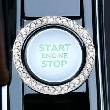 LivTee 2 PCS Crystal Rhinestone Car Engine Stop Decoration Ring, Bling Interior Accessories for Women, Push to Start Button Cover/Sticker, Key Ignition & Knob, White
