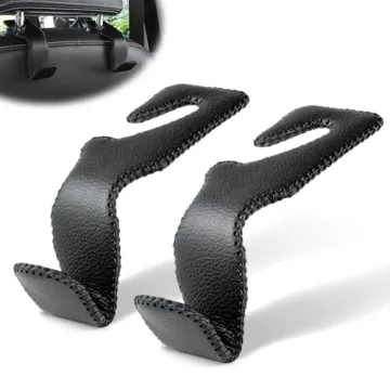 Show moreDiscover the ultimate solution to keep your car organized with our LivTee Black Superior Leather Car Seat Back Headrest Hooks! These hooks are not just a functional addition to your vehicle; they are designed specifically for practicality and elegance. Crafted from high-quality metal and wrapped in sleek leather, they ensure a perfect match for your car's interior. Say goodbye to chaotic car rides and hello to serene organization as you securely hang your groceries, handbags, and various items while on the road.