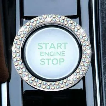 LivTee Car Engine Start Stop Decoration Ring, Crystal Double Rhinestone, Bling Car Interior Accessories for Women, Key Ignition & Knob Bling Ring, Push to Start Button Cover/Sticker, Colorful