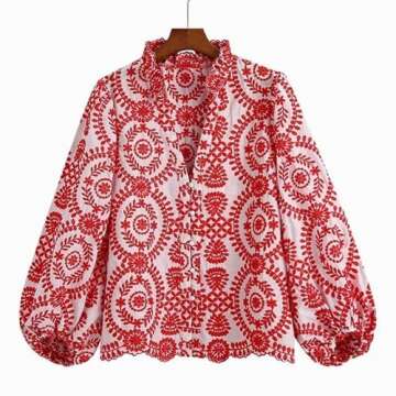 LIXINGHEITANG Embroidered Blouse Women Long Sleeve Fitted Clothing Female Shirt Slim Lady Top Wears