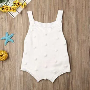 Show more Introducing the Liyamiee Newborn Baby Sleeveless Romper, the ideal outfit for your little one this fall and winter! Crafted from high-quality knit materials, this sweet and stylish bodysuit combines comfort with adorable fashion. Featuring charming pompom details, this romper is designed to keep your baby both cozy and cute. The unique sleeveless design makes it perfect for layering, allowing you to easily pair it with a long-sleeve shirt or a cute little jacket on chillier days. Suitable for both baby boys and girls, the elegant white color adds a touch of freshness to this versatile one-piece. Made for newborns aged 0-3 months, it’s a must-have for every baby’s wardrobe.