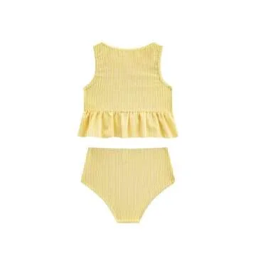 LIZENS Girls Striped Two-Piece Tankini Swimwear Set in Yellow