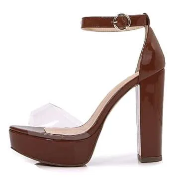 LizFoYa Women Clear Strap Heeled Sandals Chunky Heel Peep Toe Party Night Out Club Dress Platform Stiletto Shoes Brown 8