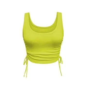 Lizstud Women's Sexy Basic Sleeveless Drawsting Ruched Slim Fit Crop Tank Tops Sweattops Vest Neon Green