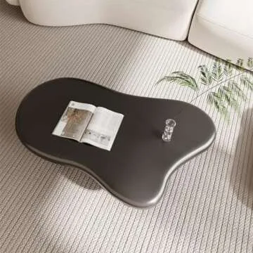 LKTART 39.37" Cloud Coffee Table for Living Room, Modern Cute Irregular Coffee Table, 4 Cylindrical Legs Black Coffee Table, Thickened Tabletop Round Corners Tea Table Office Lounge Apartment