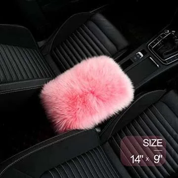LLB Auto Center Console Cover Pad Universal Fit for SUV/Truck/Car, Genuine Sheepskin Wool Fur Car Armrest Seat Box Cover, Furry Fluffy Auto Armrest Cover Protector (Pink)