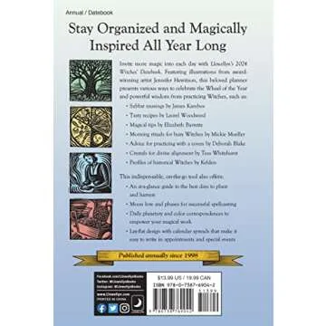 Show moreEmbrace the mystical energies of 2024 with Llewellyn's 2024 Witches' Datebook. This enchanting datebook is designed for those who seek to harmonize their lives with the rhythms of nature and the cycles of the moon. Each month features beautifully illustrated pages filled with guidance on important dates for rituals, spells, and celebrations, all rooted in ancient traditions. Personalize your magical journey with space to track your own spiritual milestones, making this datebook a cherished companion for witches and those interested in magic alike.
