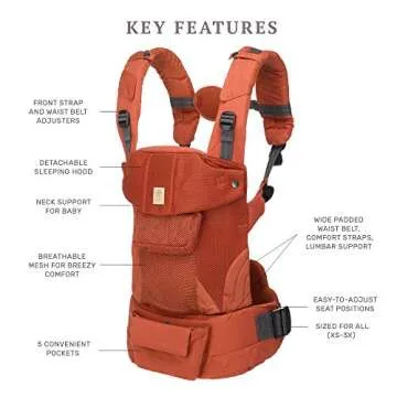 LLLbaby Serenity Airflow 6-in-1 Ergonomic Baby Carrier, Newborn to Toddler, Lumbar Support with Convertible Tote, Sienna (Sienna)