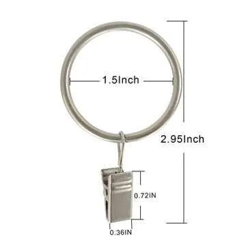 LLPJS 40 Pack Metal Curtain Rings with Clips, Curtain Clip Rings Hooks for Hanging Drapery Drapes Bows, Curtain Rod Rings 1.5 inch Interior Diameter, Matte Silver
