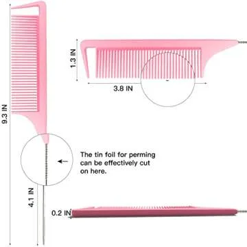 LLTGMV 9.3'' Rat Tail Comb for Hair Stylist, Parting Comb for Braiding hair, Rattail Comb with Metal Stainless Steel Pintail for Sectioning, Teasing and Styling (Pink)