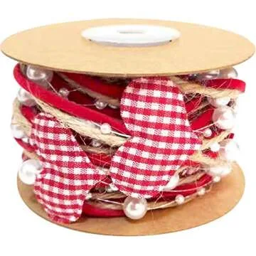 Show moreCelebrate love like never before with the Llxieym 5.47 Yards Valentine's Day Heart Beads Ribbon. This enchanting ribbon perfectly fuses a cute and unique design that brings an undeniable romantic vibe to all your Valentine's Day projects. Featuring exquisite heart-shaped parts combined with charming artificial pearls and sturdy burlap rope, this versatile ribbon is more than just decoration; it's an expression of love and creativity. With 5.47 yards of beautiful ribbon in each roll, you have plenty to work with for all your crafting needs.