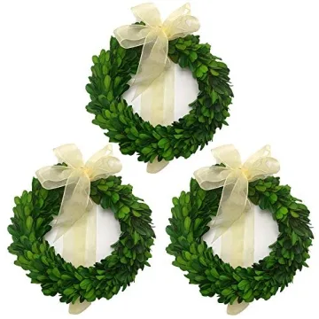 Show moreWelcome the charm of nature into your home with the LMflorals 6 Inches Real Boxwood Wreath 3 Pack. Perfectly crafted for versatility, each wreath showcases vibrant green leaves paired beautifully with a delicate light yellow bow, making them an eye-catching addition to your decor. Whether you’re decorating your front door, window, or patio, these wreaths provide just the right touch of elegance and warmth. Ideal for both festive occasions and everyday use, these stylish wreaths are suitable for all seasons, making them a must-have for your home.