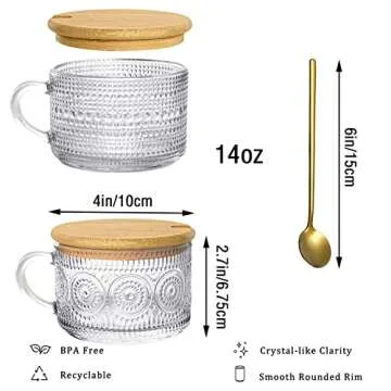 Show moreIntroducing the LMHEJING 4 Pcs 14 oz Vintage Coffee Mugs Set, a luxurious combination of style and practicality that will elevate your beverage experiences. Crafted from high-quality tempered glass, these mugs are not only visually captivating with their delightful sunflower and raindrop motifs, but they are also built to last. This set redefines sipping aesthetics, ensuring that whether you're enjoying a comforting cup of hot chocolate or a refreshing iced latte, your drink remains a joy to behold.