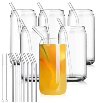 Introducing the LMHEJING 6 Pieces 20oz Drinking Glasses with 7 Pieces Reusable Glass Straws - the perfect blend of style, functionality, and fun! This drinking set is designed to elevate your beverage experience, whether you're sipping cold beers, refreshing iced coffees, or smoothies. Crafted from high-quality, durable glass, these cups not only emulate the trendy can shape we all love, but they also provide a sturdy and lightweight option that enhances your drinking pleasure. With a splash of creativity...